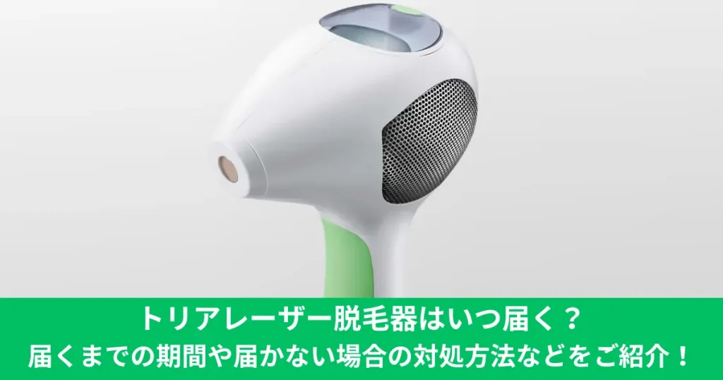 この記事はトリアレーザー脱毛器がいつ届くのかについてまとめています。 トリアレーザー脱毛器は、通常の場合、注文から3~5日程度で届きます! トリアレーザー脱毛器が届くまでの期間や届かない場合の対処法などを知りたい人は、こちらの内容を確認して... -